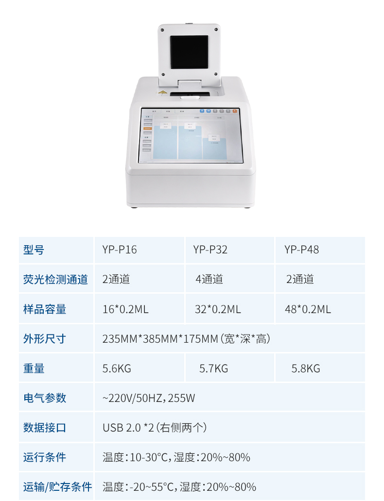 YP-P32型号非洲猪瘟绿巨人免费观看在线直播设备主要用于运行实时荧光定量PCR实验,通过荧光激发和采集的方式,对实验过程进行实时监控,将实验过程数据绘制成荧光曲线,实时呈现于仪器显示界面,并对实验数据进行拟合和分析,最后可生成PDF格式的实验报告。