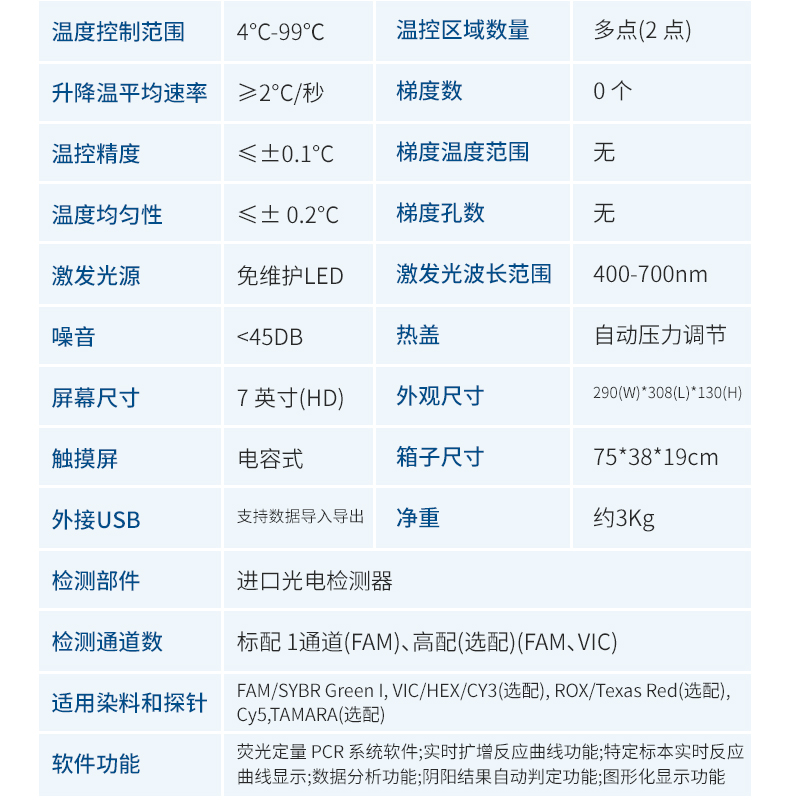 独特的恒流电源和6分区独立控温方式充分保障了系统性能稳定的光源和光路设计让荧光更加真实可靠