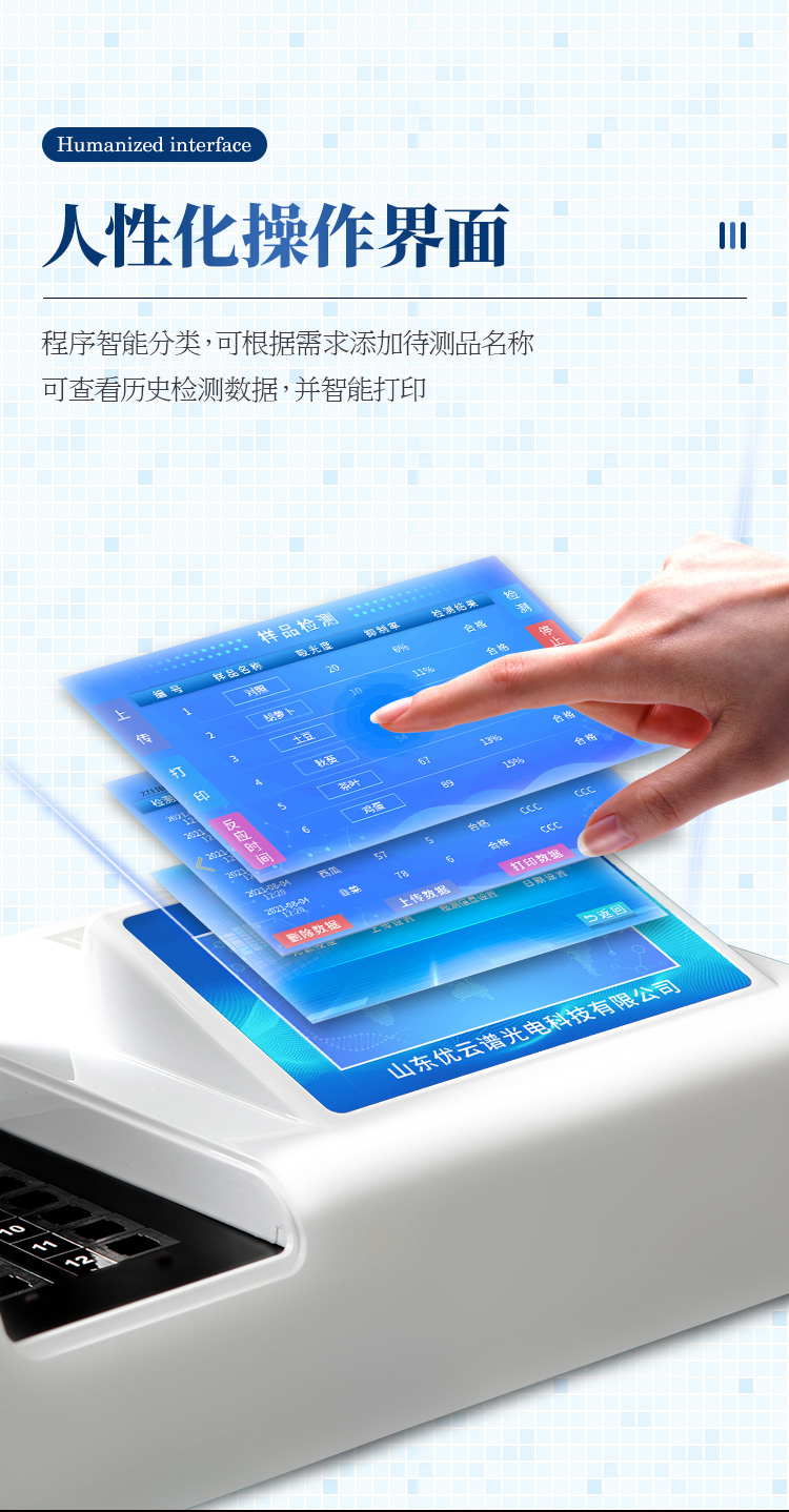 6、显示方式:7英寸高灵敏真彩触摸屏显示,人性化中文操作界面,读数直观、简单。