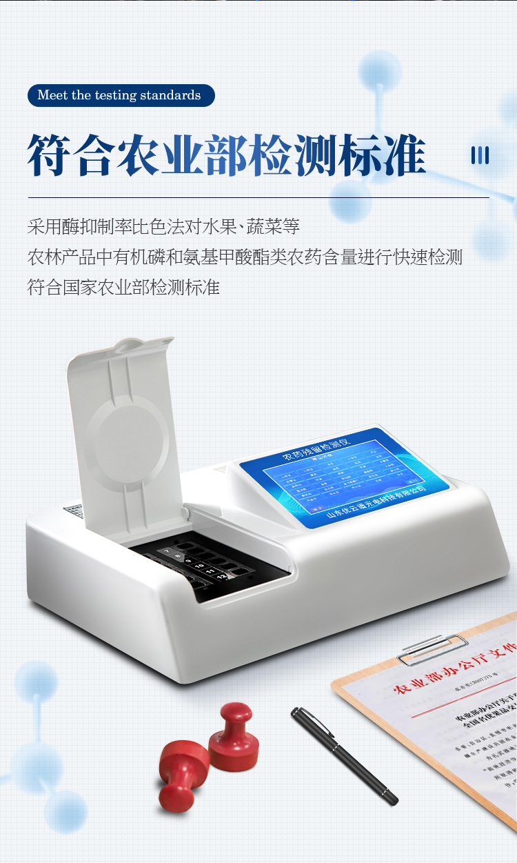 广泛应用于主要用于蔬菜、水果、茶叶、粮食、农副产品等食品中有机磷和氨基甲酸酯类农药残留的快速绿巨人免费观看在线直播;此外还可用于果蔬茶生产基地和农贸批发销售市场现场绿巨人免费观看在线直播,餐馆、学校、食堂、家庭果蔬加工前的安全速测等。