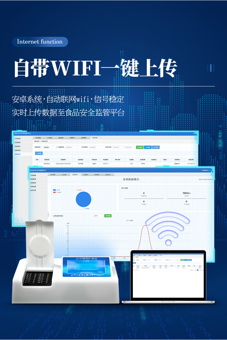 10、仪器具有GPRS远传功能,可插手机卡实现数据远传平台,wifi联网功能,可将数据快速上传电脑,进行数据管理与统计。